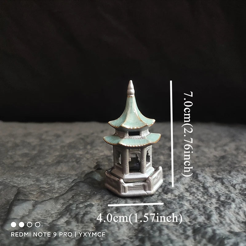 Ceramic Zen Pagoda Figurine Handcrafted Bonsai Decor Tea Pet Miniature Ornament loading
