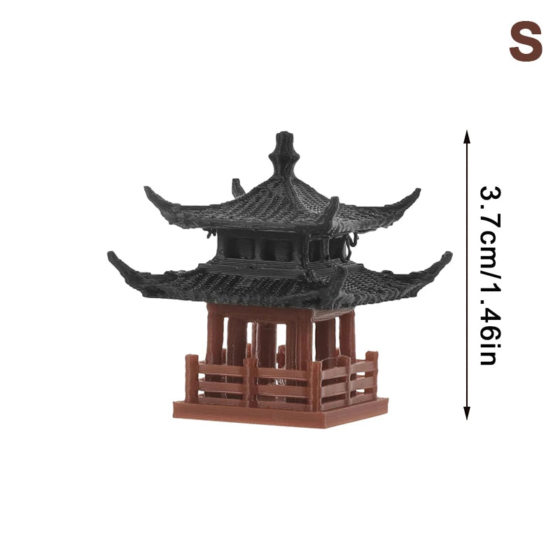 Miniature Zen Pagoda Statue Resin Japanese Pavilion Fairy Garden Bonsai Decor