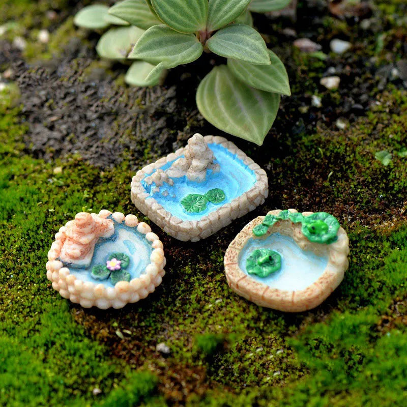 Miniature Water Pool Lotus Pond Figurine Micro Landscape DIY Fairy Garden Decor