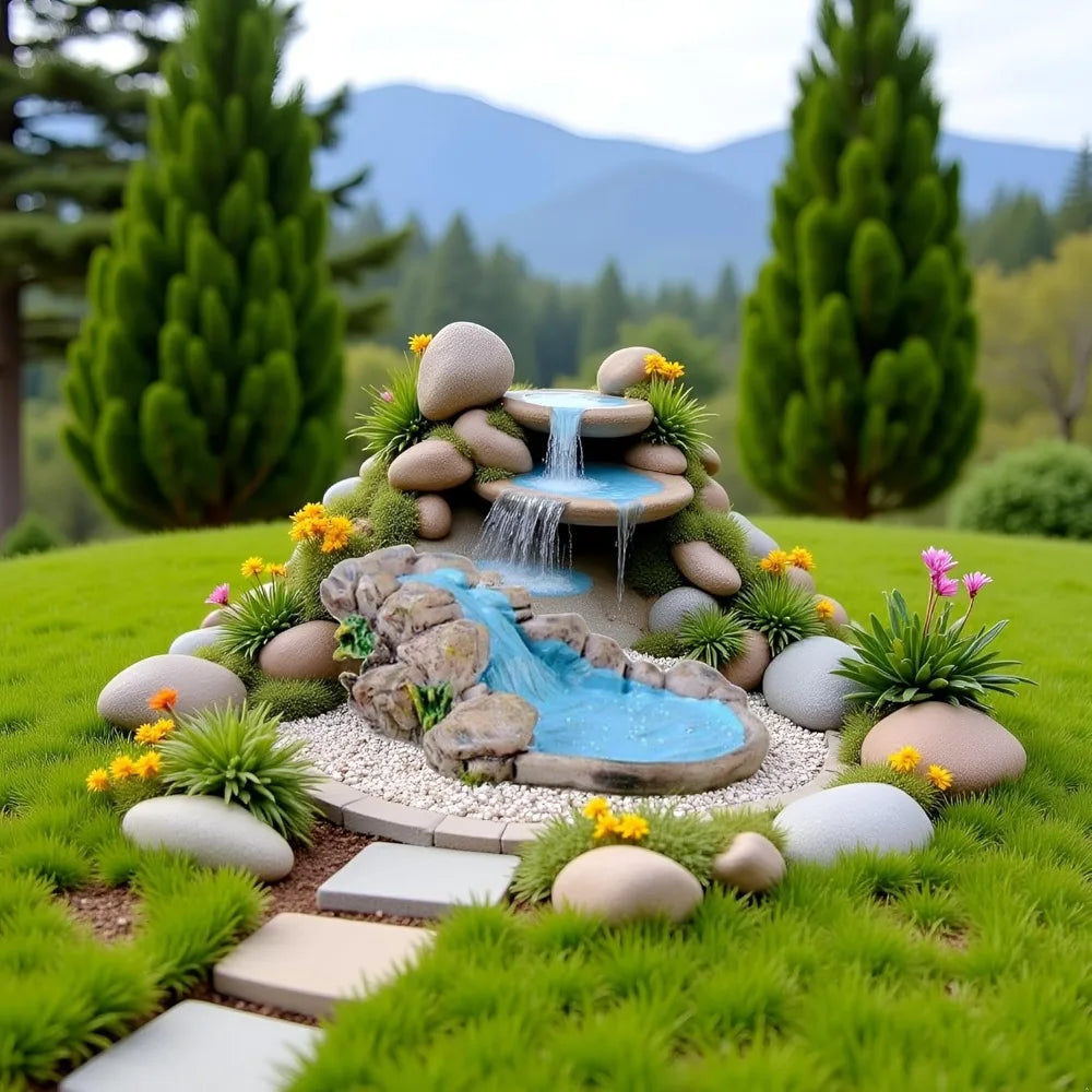 Turquoise Resin Mini Pond Water Pool Figurine Fairy Garden Decor Miniature Pond