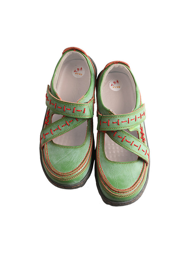 TMA EYES Hand-Stitched Sneakers Cross-Strap Velcro Solid Color Casual