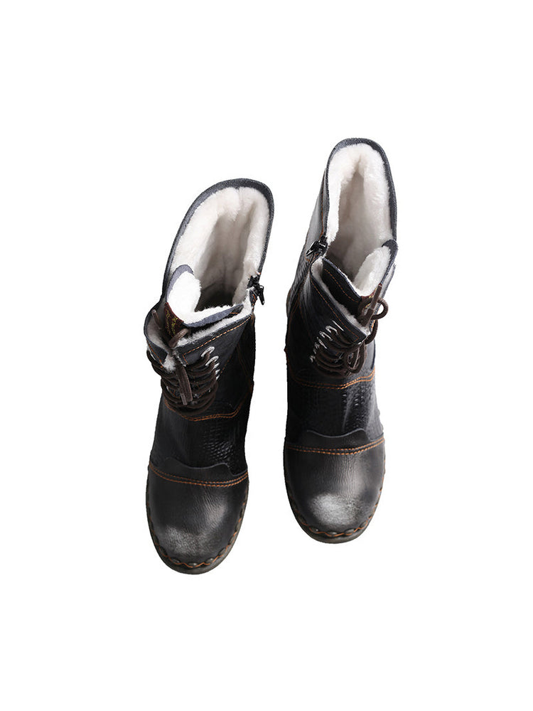 • The combination of laces and zippers gives you a personalized fit. Shaft laces ensure a secure fit around the foot and ankle, and the side zip makes this mid-calf snow boots easier to put on and take off.