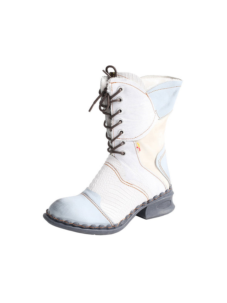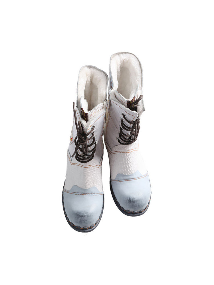 TMA EYES Croc-Embossed Leather Boots Women's Faux Fur Mid Calf Boots TMA EYES Croc-Embossed Leather Boots Women's Faux Fur Mid Calf Boots