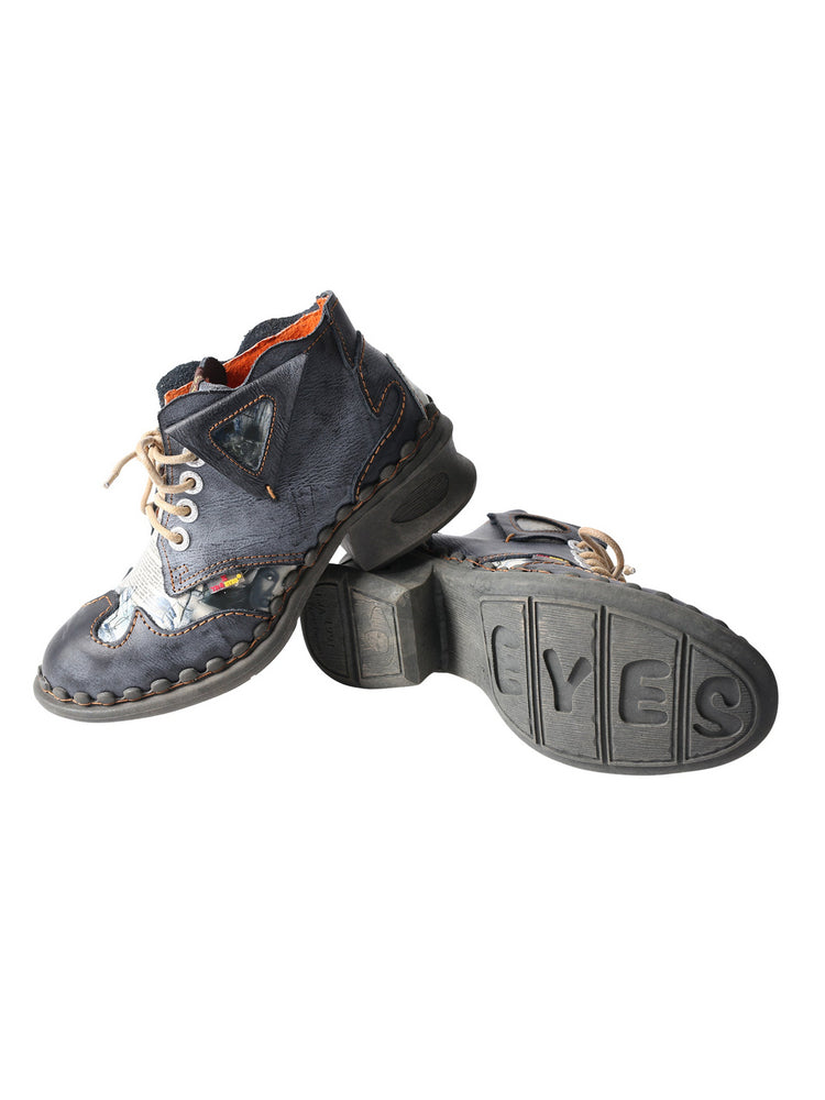 TMA EYES Floral Print Ankle Boots  Medium Heel Leather Outdoor Women's Shoe TMA EYES Floral Print Ankle Boots  Medium Heel Leather Outdoor Women's Shoe