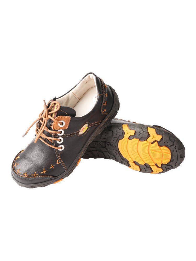 TMA EYES Top-Grain Leather Color-Block Sneakers Hand-Stitched Casual