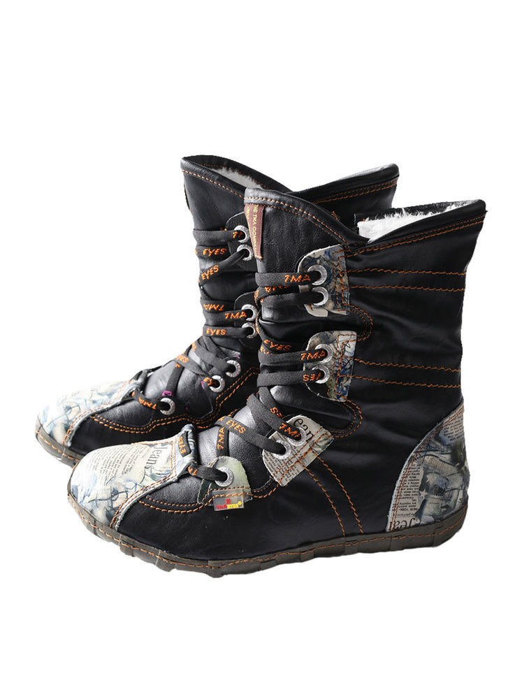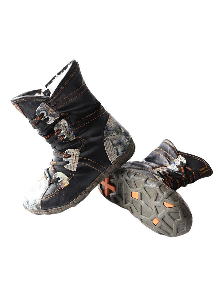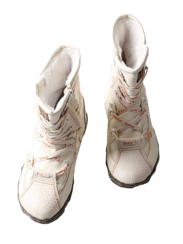 TMA EYES Women's Snake-Embossed Short Boot Faux Fur Lined Leather & PU