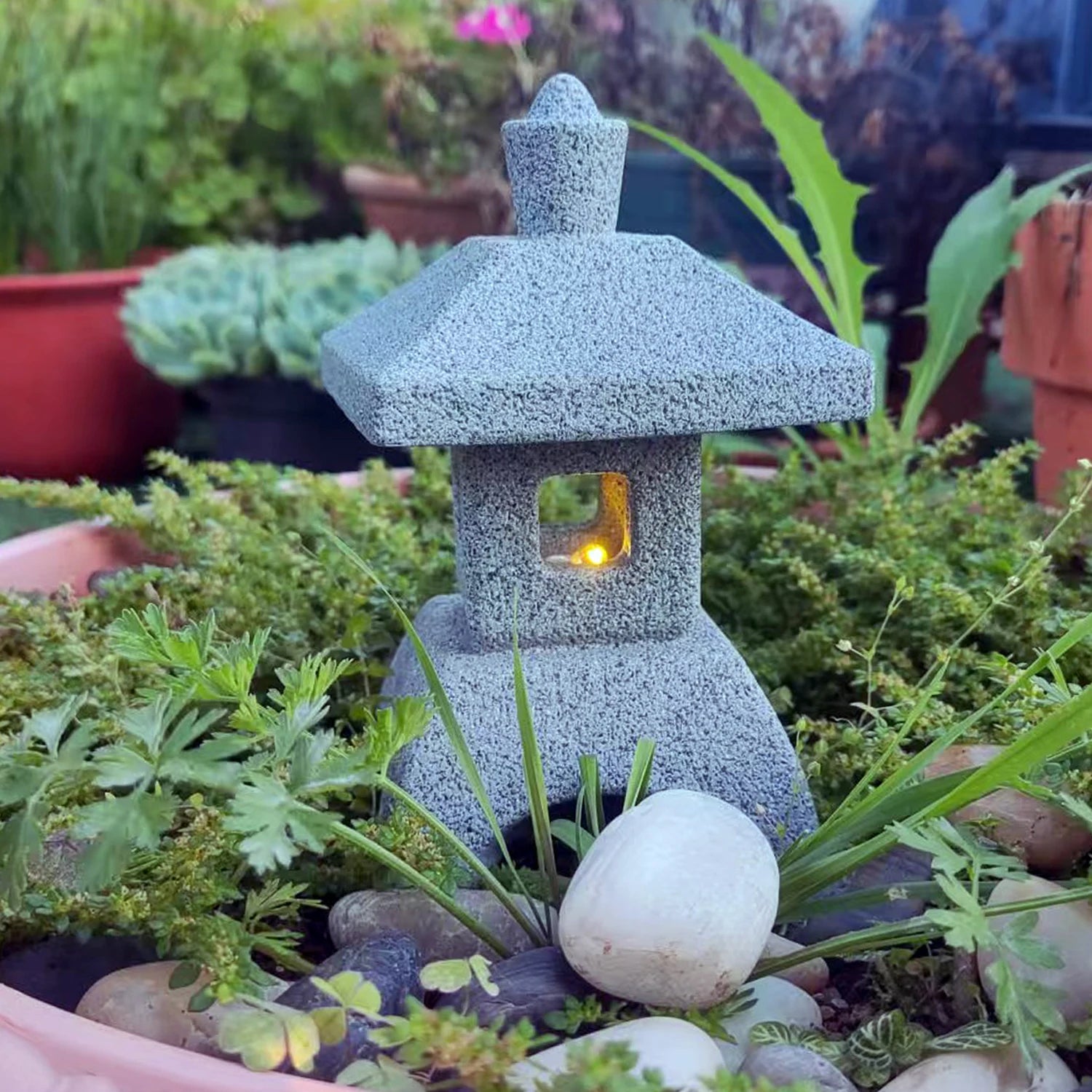 Japanese Pagoda Statue Zen Garden Lantern Solar LED Light Outdoor Fish Tank Decor