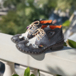 TMA EYES Women’s Ankle Boots – Medium Heel, Floral Newspaper Printed Leather