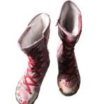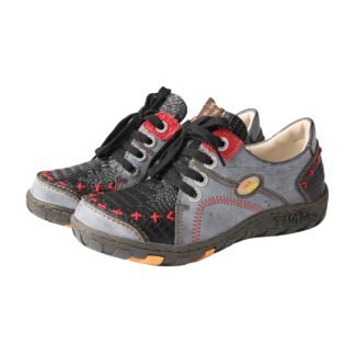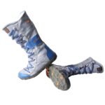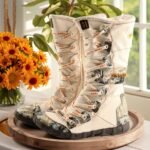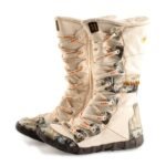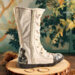 TMA EYES Women’s Boots – Long Washed Contrast-Stitch Lace Eyes, Side Zipper