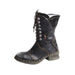 TMA EYES Women’s Croc-Embossed Leather Mid-Calf Boots with Faux Fur Lining