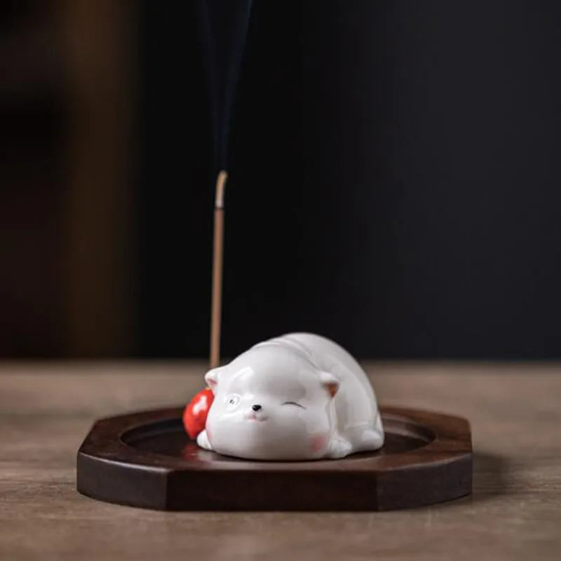 Cute Cat Porcelain Incense Stick Holder Creative Ceramic Ash Catcher Home Decor