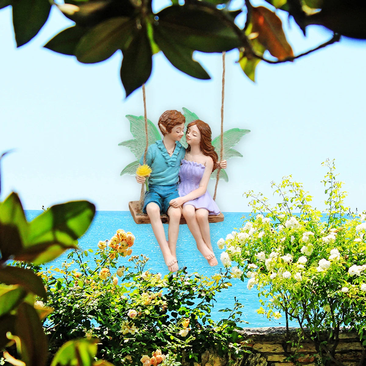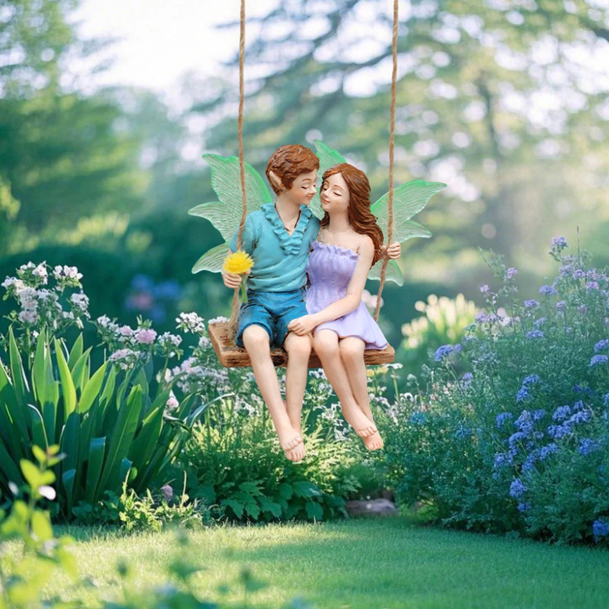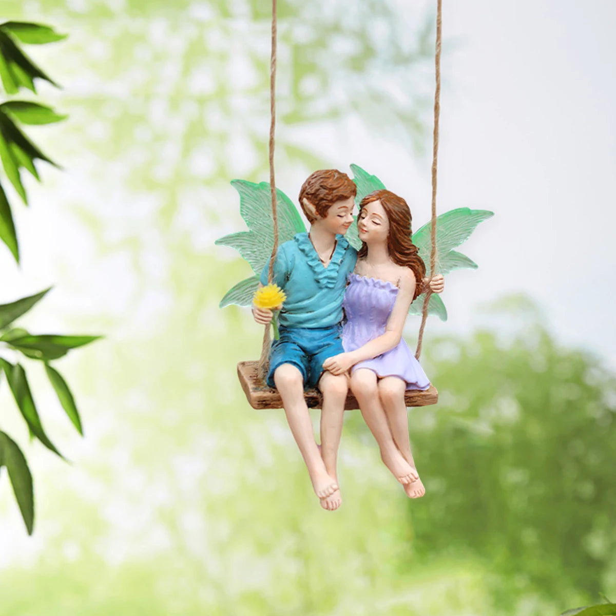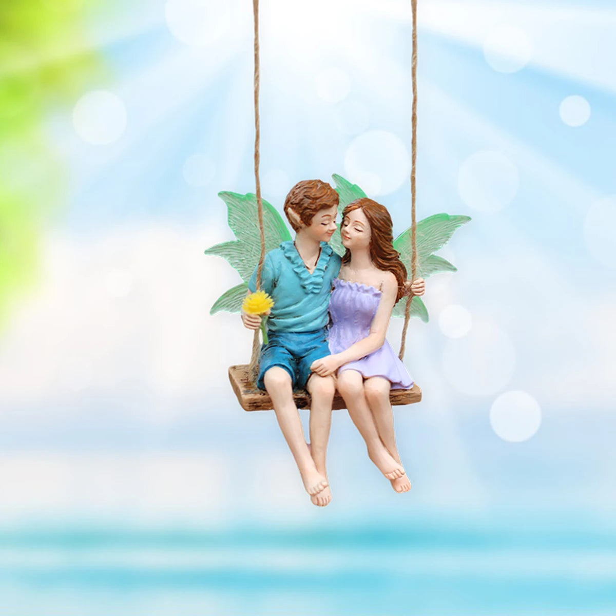 Glow in the Dark Wings Swinging Fairy Resin Hanging Statue Garden Tree Decor Gift