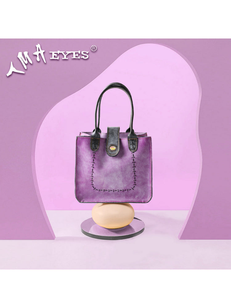 TMA EYES New Handcrafted Color-Blocked Genuine Leather Tote Bag: Perfect for School, Work, and Commuting