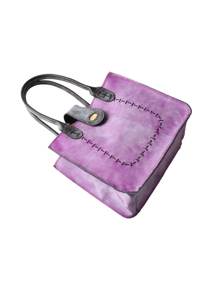 • TMA EYES New Handcrafted Color-Blocked Genuine Leather Tote Bag: Perfect for School, Work, and Commuting