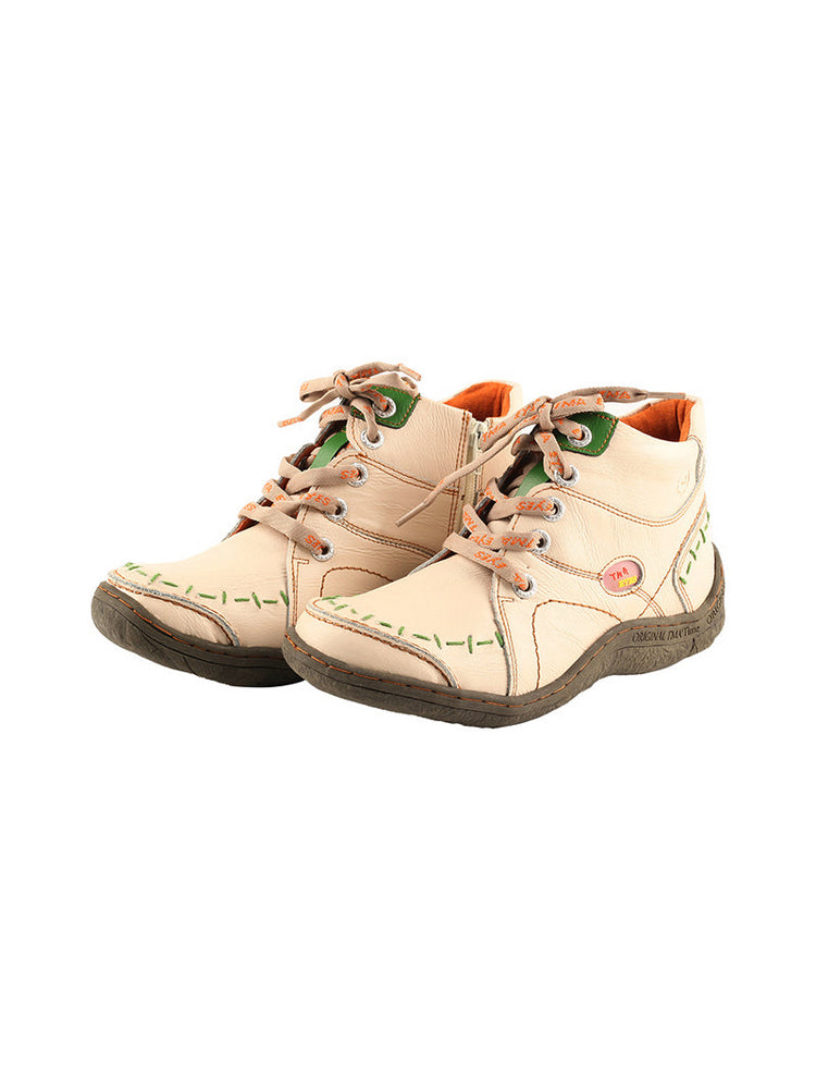 TMA EYES Handwork Leather Casual Boots Low Heel Stitching Lace-up Women's