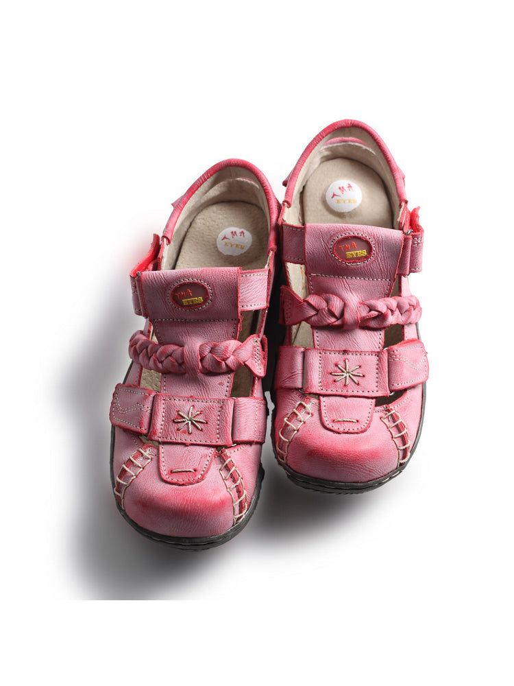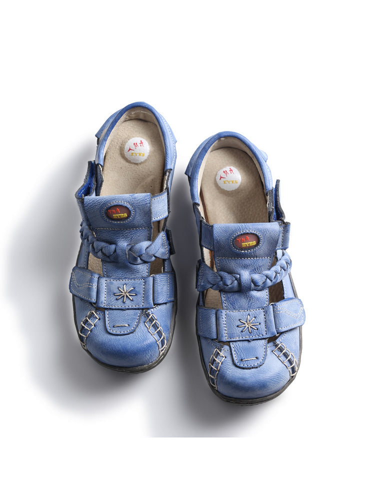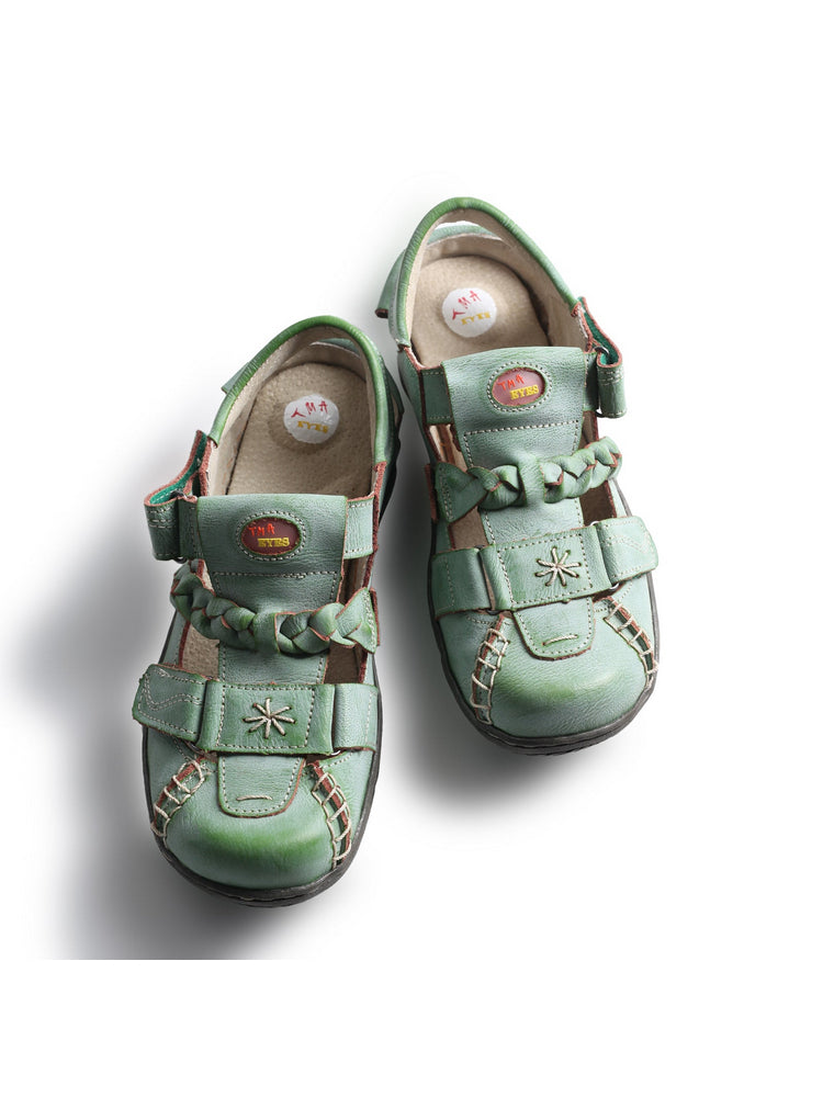 Braided Closed-Toe Leather UpperTMA EYES shoes is walking TPR outsole is slip resistant and wear resistant.TMA EYES shoes is genuine leather upper and lining, breathable. The process of rubbing powder on genuine leather will show different colors.Comfortable, massaged insoles won't tire your feet.Velcro closure for easy on and off.
