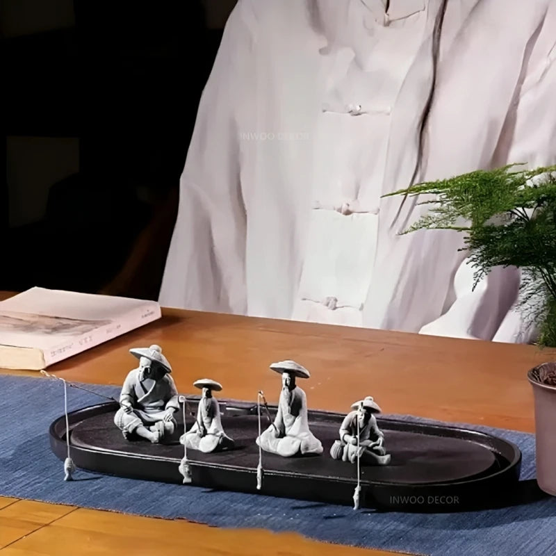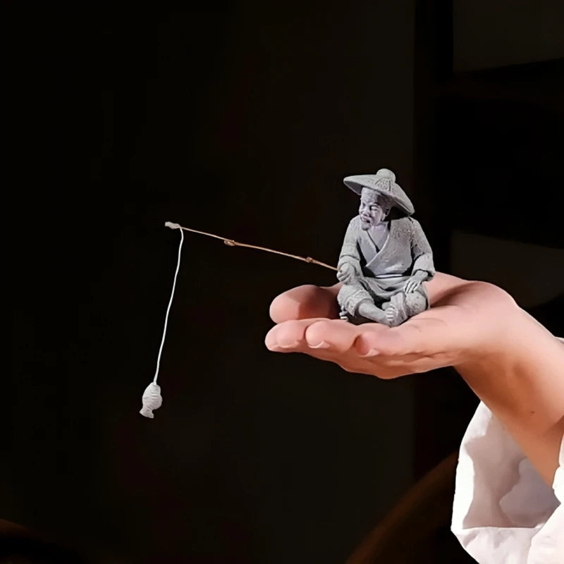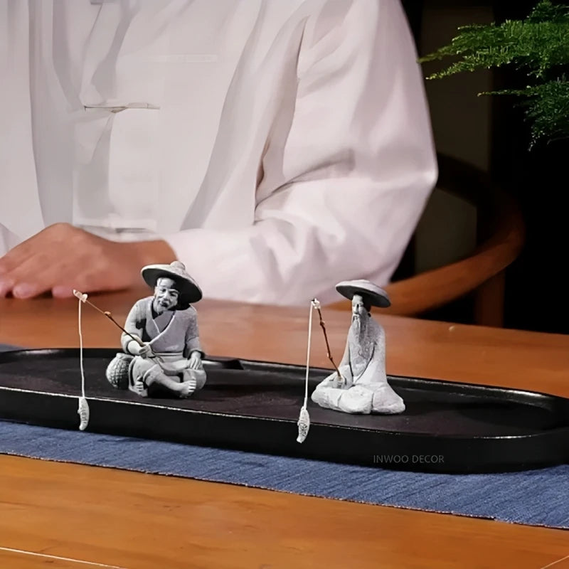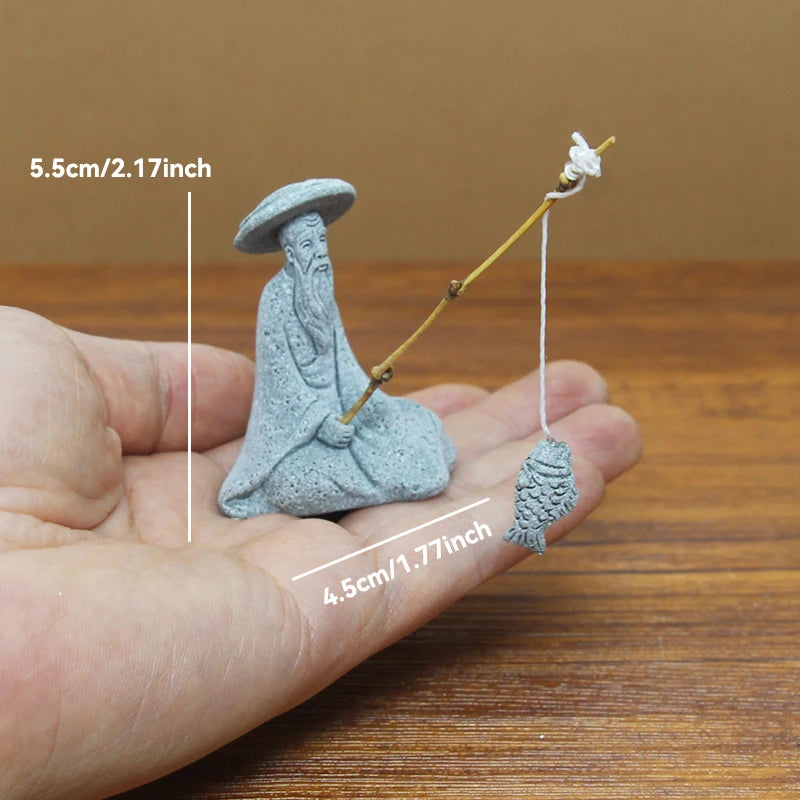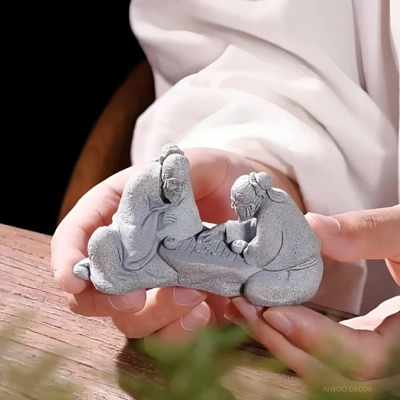 Zen Fisherman & Elder Playing Chess Statue Sandstone Bonsai Fish Tank Ornament